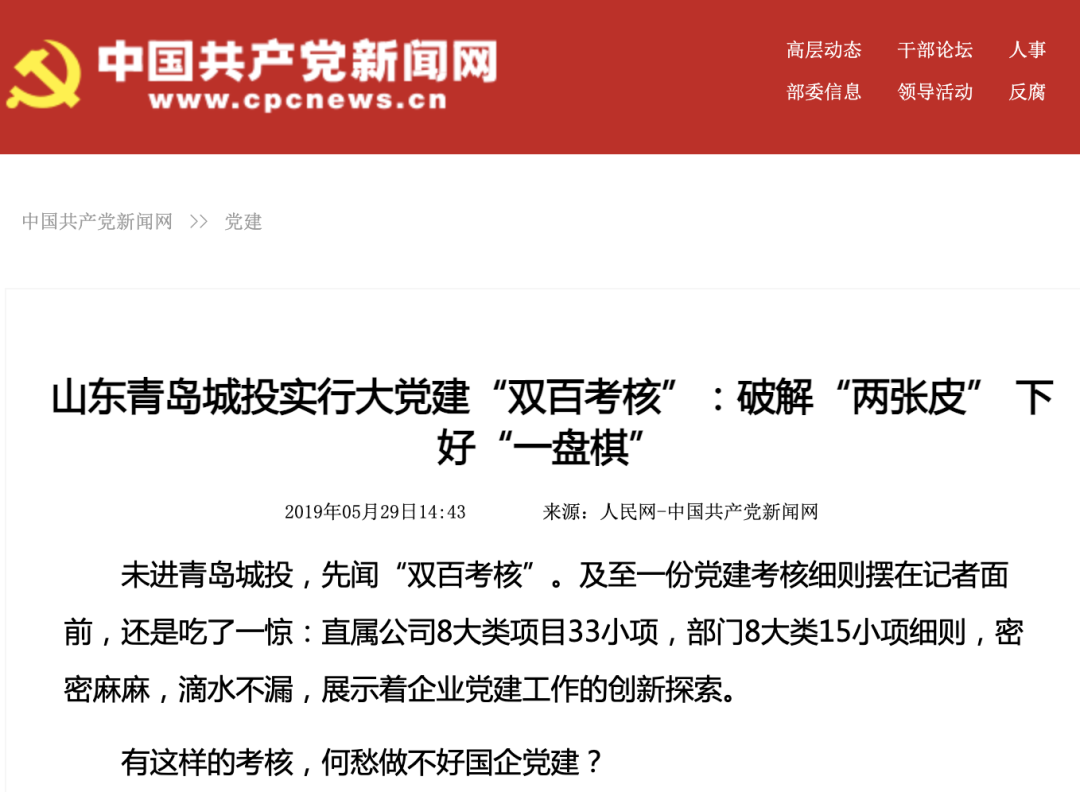 (圖為中國共產(chǎn)黨新聞網(wǎng)報(bào)道城投集團(tuán)“雙百考核”)